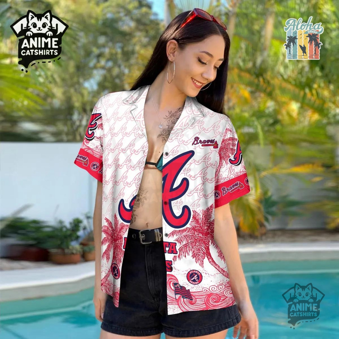 The Atlanta Braves 3D All Over Print MLB Aloha Hawaiian Shirt offers a truly distinctive and vibrant way for fans to showcase their unwavering support for the team, moving beyond conventional fan apparel. This garment is a masterclass in blending spirited team loyalty with a relaxed, vacation-ready aesthetic, making it an immediate eye-catcher for anyone considering a purchase. Its primary appeal lies in the innovative 3D all-over print, which is far more dynamic than a standard flat design. This advanced printing technique creates an illusion of depth and texture, making the Braves logos, “A” motifs, and subtle tomahawk graphics appear to pop off the fabric, intermingled seamlessly with classic Hawaiian elements like hibiscus flowers, palm fronds, and tropical waves. The result is a richly detailed, immersive visual experience that celebrates both the team and a laid-back lifestyle.