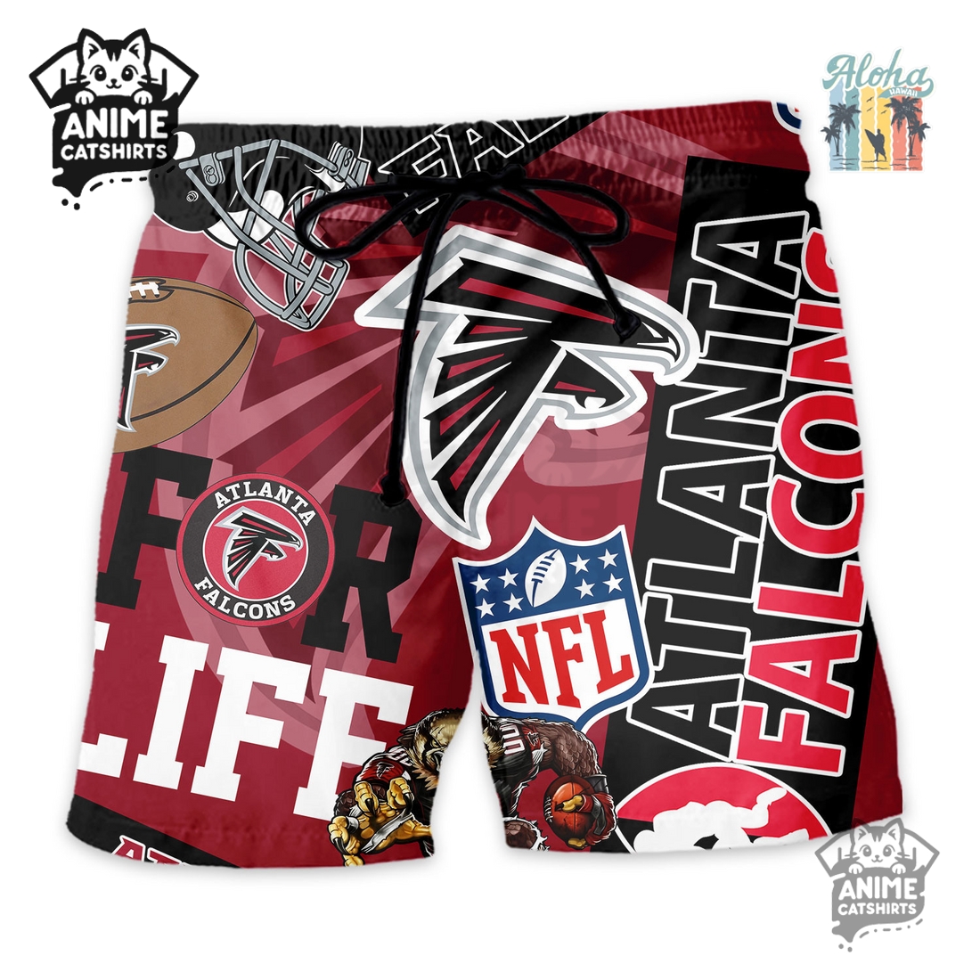 This Atlanta Falcons NFL Aloha Shirt & Shorts Set presents a dynamic and comfortable option for any devoted supporter seeking to infuse their team spirit into a laid-back, summer-ready wardrobe. Designed with a unique blend of tropical aesthetics and unwavering Falcons pride, this coordinated ensemble offers a distinctive way to cheer on your favorite team, whether you’re at a tailgate, a backyard barbecue, or simply enjoying a sunny day out. The shirt, a classic button-down with short sleeves, features an eye-catching all-over print that masterfully integrates iconic Atlanta Falcons elements with traditional Hawaiian motifs. Imagine the bold red, black, and white team colors intertwined with subtle palm fronds, hibiscus flowers, and miniature Falcon head logos or wordmarks, creating a pattern that is both spirited and stylish without being overly garish. This isn’t just a basic team shirt; it’s a statement piece that allows you to express your allegiance with a relaxed, vacation-ready flair, standing out from the sea of standard jerseys and t-shirts.