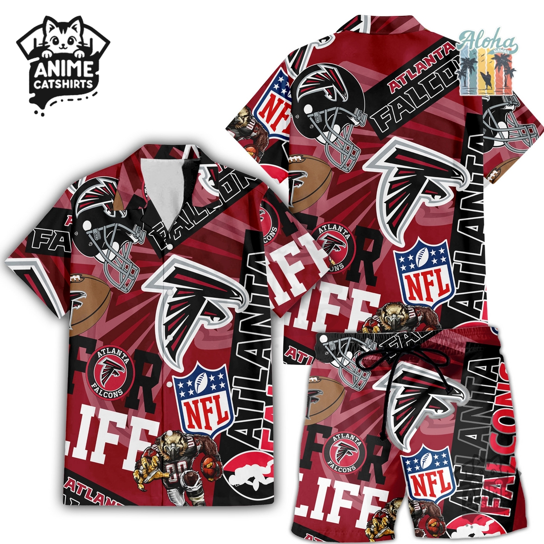 Atlanta Falcons NFL Aloha Shirt & Shorts Set – Stylish & Comfortable Hawaiian Shirt and Shorts Set