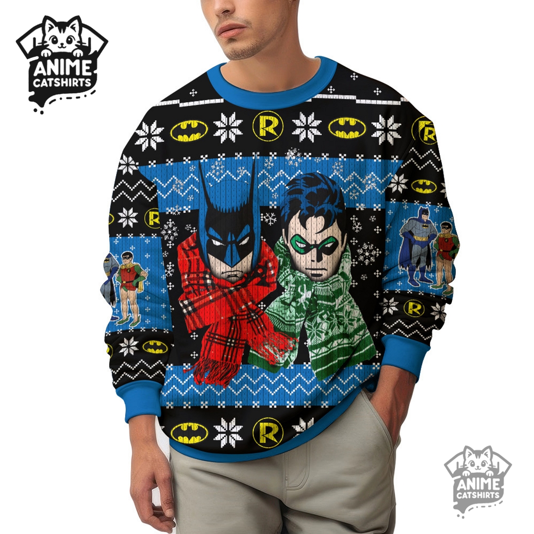 With festive all-over artwork and easy-care performance, the Batman And Robin Ugly Christmas Sweater is ready for parties, photo ops, and every cozy moment of the season.