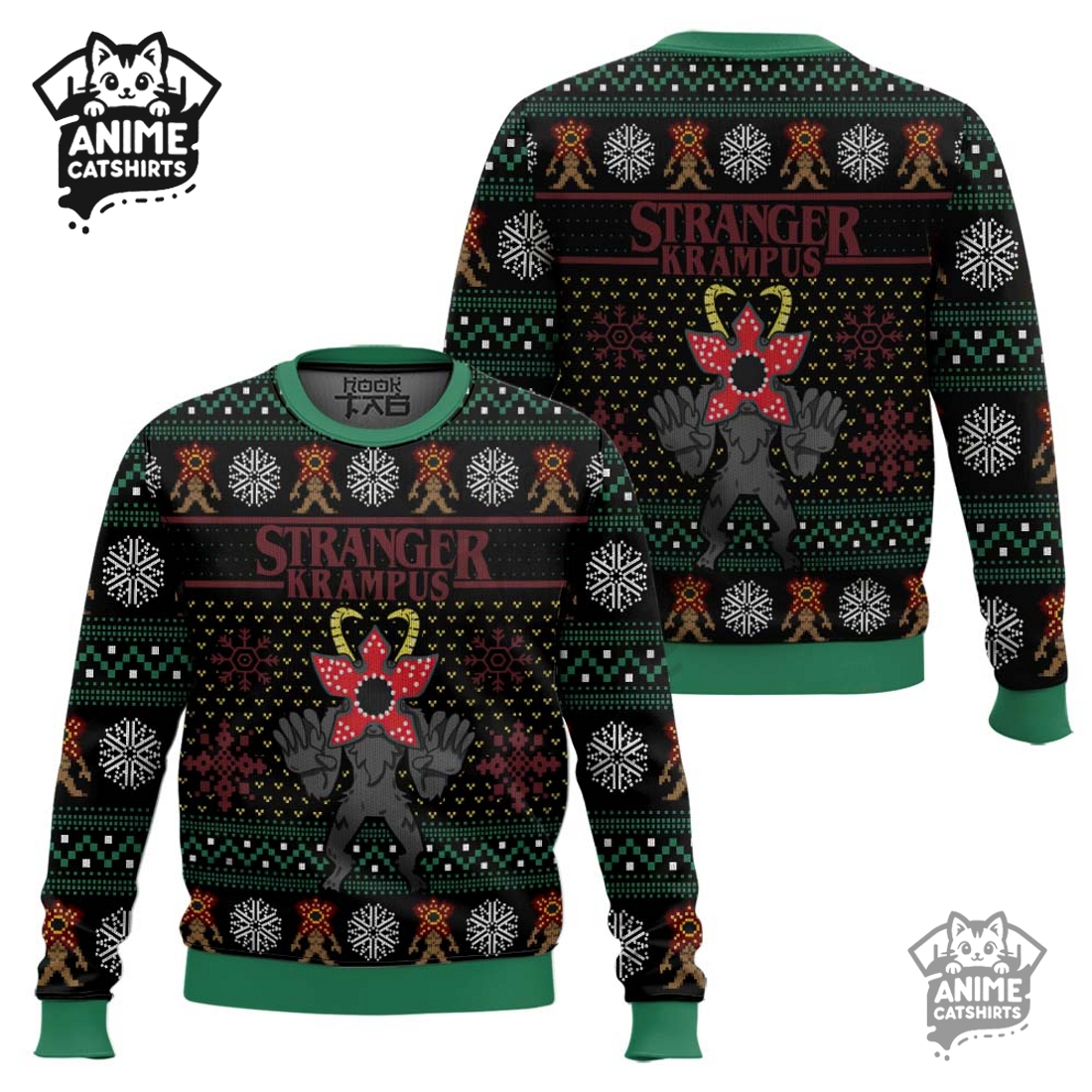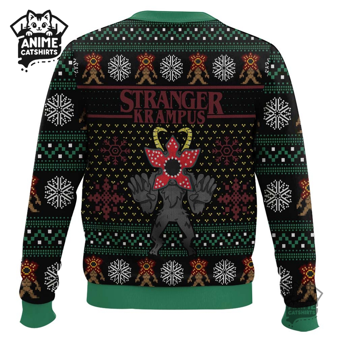 For the – Stranger Things- devotee, this sweater is an unparalleled opportunity to express fandom in a uniquely festive context, bridging the gap between their favorite sci-fi horror series and the jovial, if sometimes forced, cheer of the holidays. It speaks to those who find joy in the darker corners of pop culture and who appreciate a good monster over a saccharine snowman. Simultaneously, fans of European folklore and those with a penchant for the macabre will appreciate the Krampus inclusion, a nod to the ancient tradition of the “Christmas Devil” that punishes the naughty rather than rewarding the nice. This dual appeal widens its audience considerably, making it an ideal choice for a diverse array of individuals seeking to make a memorable impression. It’s a guaranteed conversation starter at any office party, family dinner, or themed holiday event, inviting questions and admiration for its imaginative blend of terror and festivity. Users aren’t just buying a sweater; they’re investing in an experience, a statement piece that embodies their unique taste, sense of humor, and appreciation for niche culture. It solves the perennial problem of needing a holiday outfit that is both appropriate for the season and genuinely reflective of an individual’s distinct personality, offering warmth, comfort, and an undeniable dose of character that mass-produced holiday wear simply cannot match. It’s an essential acquisition for anyone looking to embrace the holidays with a twist, proving that even the Upside Down can get into the festive spirit, albeit in its own gloriously ghoulish way.