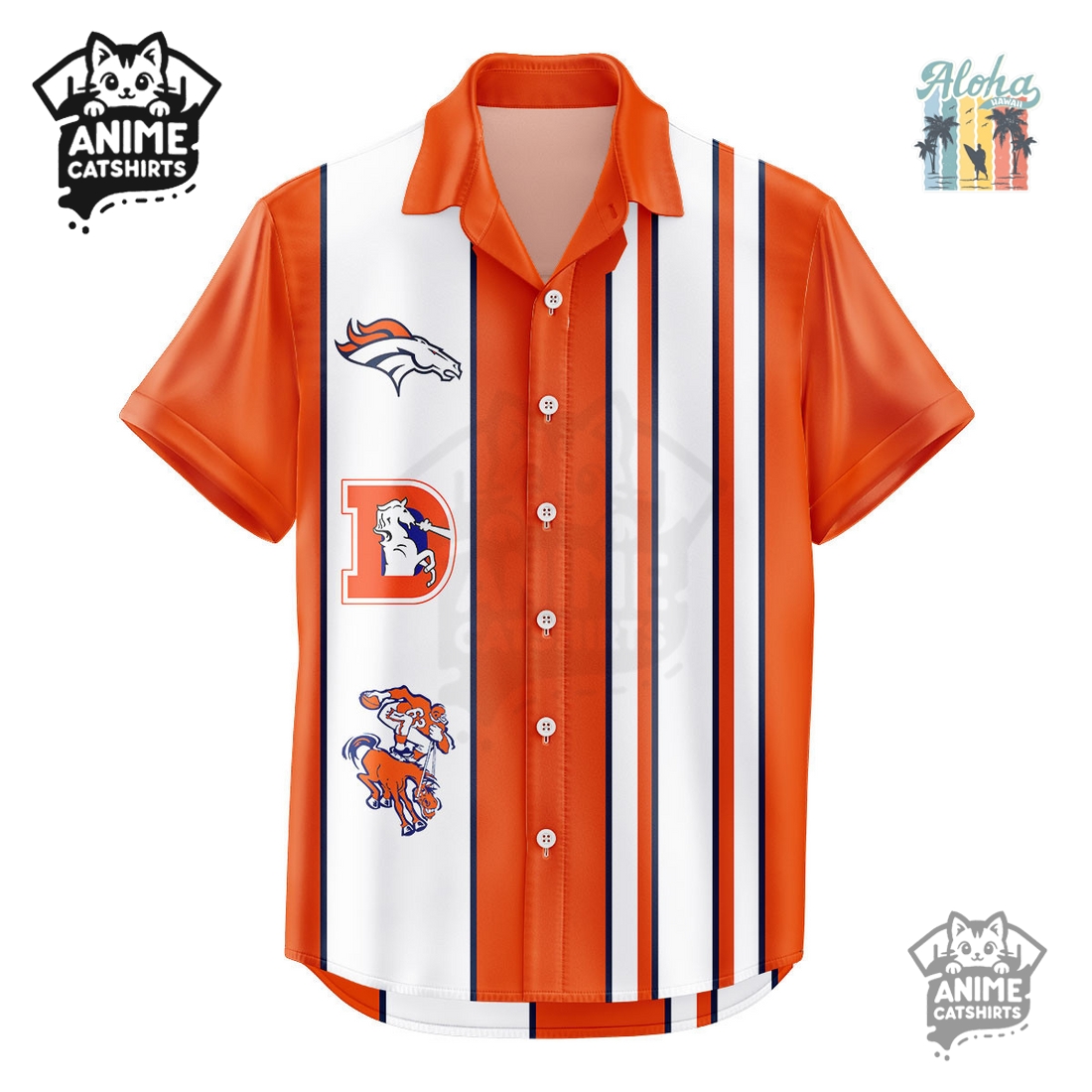 The Denver Broncos NFL Hawaiian Shirt presents a vibrant and distinctive option for fans seeking to showcase their team allegiance with an unconventional flair. This unique garment masterfully fuses the iconic imagery and color palette of the Denver Broncos with the laid-back, tropical aesthetic of a classic Hawaiian shirt, offering a refreshing alternative to traditional game-day attire. The design prominently features the team’s signature orange and navy blue, interwoven with playful, custom-designed patterns where the Broncos’ horsehead logo seamlessly integrates into stylized hibiscus flowers and palm fronds. Imagine the majestic Broncos emblem subtly appearing amidst a lush, island-inspired landscape, creating a visual narrative that is both unmistakably team-centric and exotically charming. This isn’t just a logo slapped onto a floral background; it’s a thoughtfully curated print that celebrates both the spirit of football and the joy of leisure, ensuring that every detail contributes to its unique appeal, from the exact shade of orange to the careful placement of tropical foliage around the team’s historic insignia.