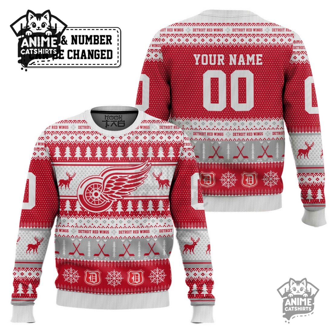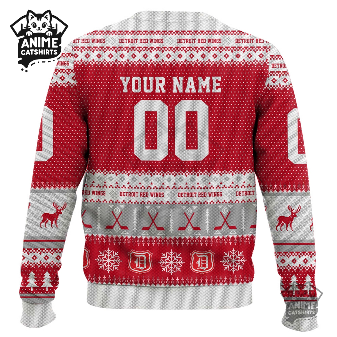 The advantages of owning such a distinctive item are manifold for potential customers. It serves as the quintessential attire for “ugly sweater” holiday parties, guaranteeing smiles, laughter, and an immediate topic of conversation, effectively turning the wearer into the life of the party. For game nights, it offers a spirited alternative to traditional jerseys, allowing fans to showcase their unwavering loyalty with a touch of playful holiday flair. It’s also perfect for casual outings during the colder months, a comfortable and warm garment that proudly announces one’s allegiance to the Detroit Red Wings without needing a specific event. This sweater directly addresses the need for fans to express their passion in a fun, visible, and personalized way, allowing them to stand out from the crowd of generic team gear. For gift-givers, the customization feature makes it an incredibly thoughtful and memorable present for any Red Wings enthusiast, demonstrating effort and personal consideration that goes far beyond a store-bought item. The high-quality construction ensures longevity, meaning this sweater isn’t just for a single season but a durable piece that can be brought out year after year, becoming a beloved part of annual traditions. It meets the need for unique team representation, comfortable warmth, and a highly versatile piece of apparel that fits into both spirited celebrations and everyday casual wear, making it an exceptional addition to any fan’s collection.