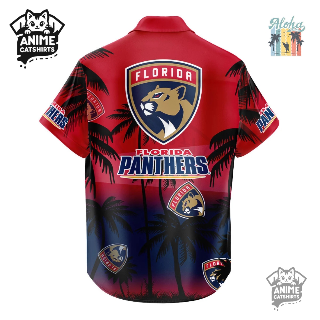 What truly distinguishes this garment is its intricate, custom all-over print, which masterfully integrates Florida Panthers iconography into traditional Hawaiian motifs. Within the vibrant tapestry of palm trees, hibiscus flowers, crashing ocean waves, and exotic foliage, users will discover cleverly interspersed elements of the Panthers brand. This might include the unmistakable leaping panther logo, or subtle outlines of the cat’s head, woven artfully into the pattern so that it’s recognizably team-specific without being overtly branded like a typical sports jersey. The team’s official colors – vibrant red, sun-kissed gold, deep black, and crisp white – are thoughtfully applied across the print, creating a harmonious and striking visual that captures both the tropical spirit and the team’s fierce energy. This design ingenuity means that the shirt functions as both a stylish fashion piece and a clear declaration of fandom, appealing to those who desire a more unique and less conventional way to support their team.