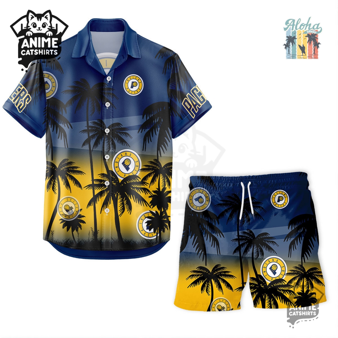 This Hawaiian Shirt and Shorts Set isn’t just a typical shirt and shorts – it’s a complete tropical experience! Comfortable, breathable, and stylish, the Indiana Pacers NBA Aloha Shirt is the perfect choice for beach days, vacations, or casual summer outings.