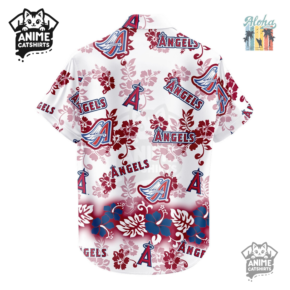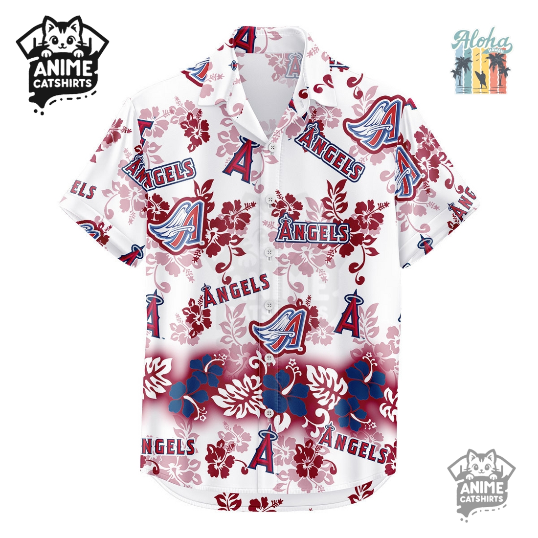 The Los Angeles Angels Aloha Paradise MLB Aloha Hawaiian Shirt presents an unparalleled option for fans seeking to meld their unwavering team loyalty with a relaxed, vibrant aesthetic. This isn’t merely another piece of fan merchandise; it’s a meticulously designed garment that captures the essence of both Southern California casual cool and the laid-back charm of the Hawaiian islands, all while prominently showcasing allegiance to the Angels. Its defining feature is the breathtaking all-over print, which masterfully integrates iconic Angels imagery with lush, tropical flora and fauna. Picture the classic Angels “A” logo, often adorned with its halo, cleverly interspersed among vibrant hibiscus flowers, swaying palm trees, and perhaps subtle oceanic waves or even faint outlines of baseballs hidden within the leaves. The color palette seamlessly blends the Angels’ signature red, white, and navy with the bright, natural greens of tropical foliage and the serene blues of the ocean, creating a harmonious visual feast that is both unmistakably team-spirited and authentically Hawaiian. This intricate design ensures that every glance reveals a new detail, making it a true conversation starter whether you’re at the ballpark, a backyard BBQ, or a beachside resort.