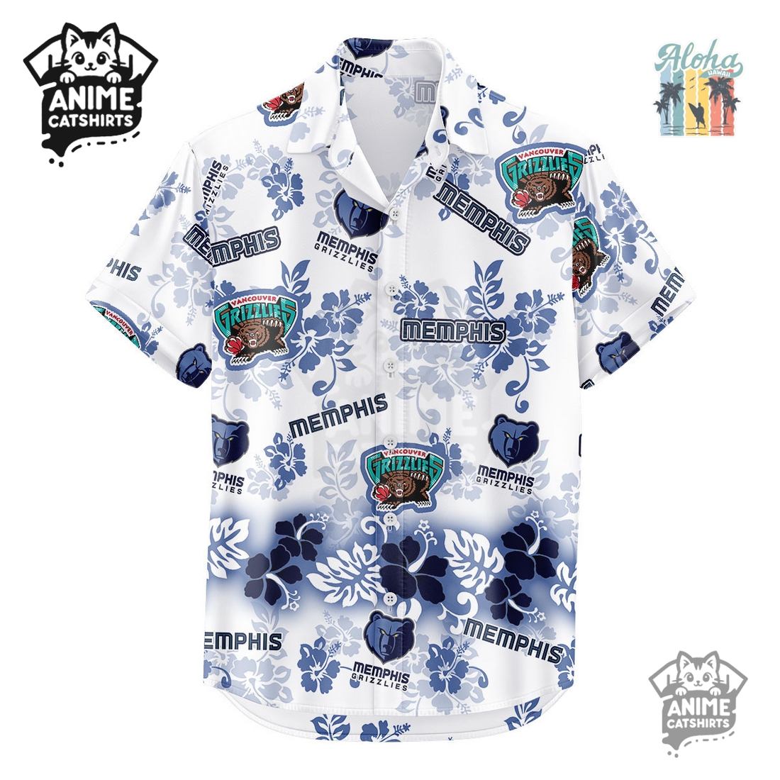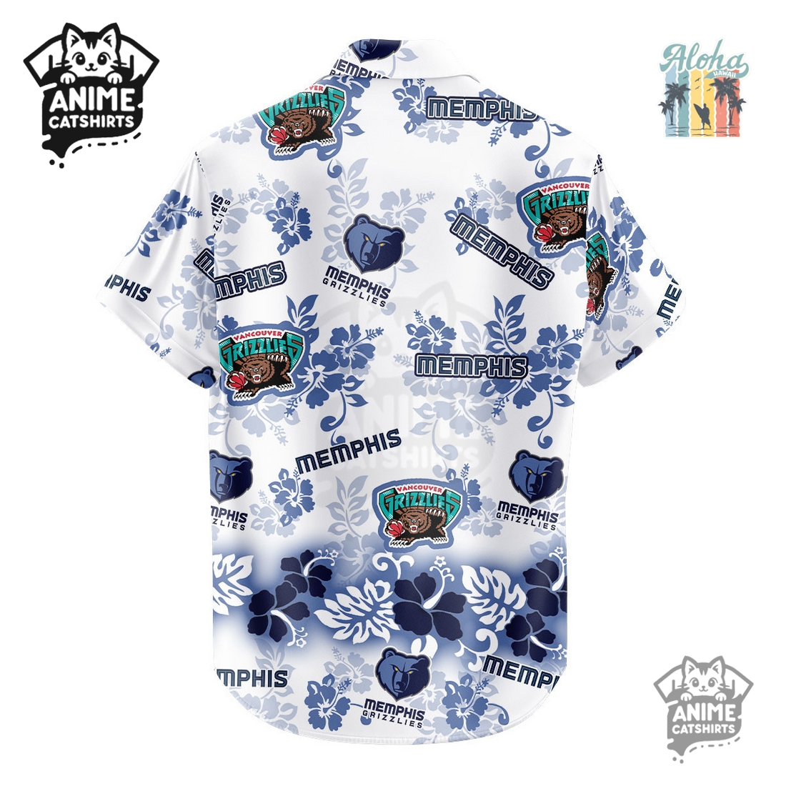 The true artistry lies in its “Aloha Paradise” design, a masterclass in thematic integration. The base color palette is typically rich and inviting, often featuring tropical blues, greens, or deep navies evoking ocean vistas and lush island foliage. Adorned across this backdrop is an intricate, all-over pattern that brilliantly interweaves classic Hawaiian motifs with unmistakable Memphis Grizzlies branding. Delicate hibiscus flowers, swaying palm trees, and serene ocean waves are depicted, subtly or overtly morphing into or framing iconic Grizzlies symbols. The ferocious grizzly bear head logo might emerge from a cluster of tropical leaves, basketballs could be cleverly disguised within a floral print, or the team’s name stylishly rendered to complement the island aesthetic rather than clash with it. This isn’t merely a logo stamped onto a floral shirt; it’s a thoughtful, cohesive design where every element feels organically part of the “Aloha Paradise” narrative. The print quality is exceptional, ensuring crisp lines and vivid colors that remain sharp and fade-resistant, even under extended sun exposure.