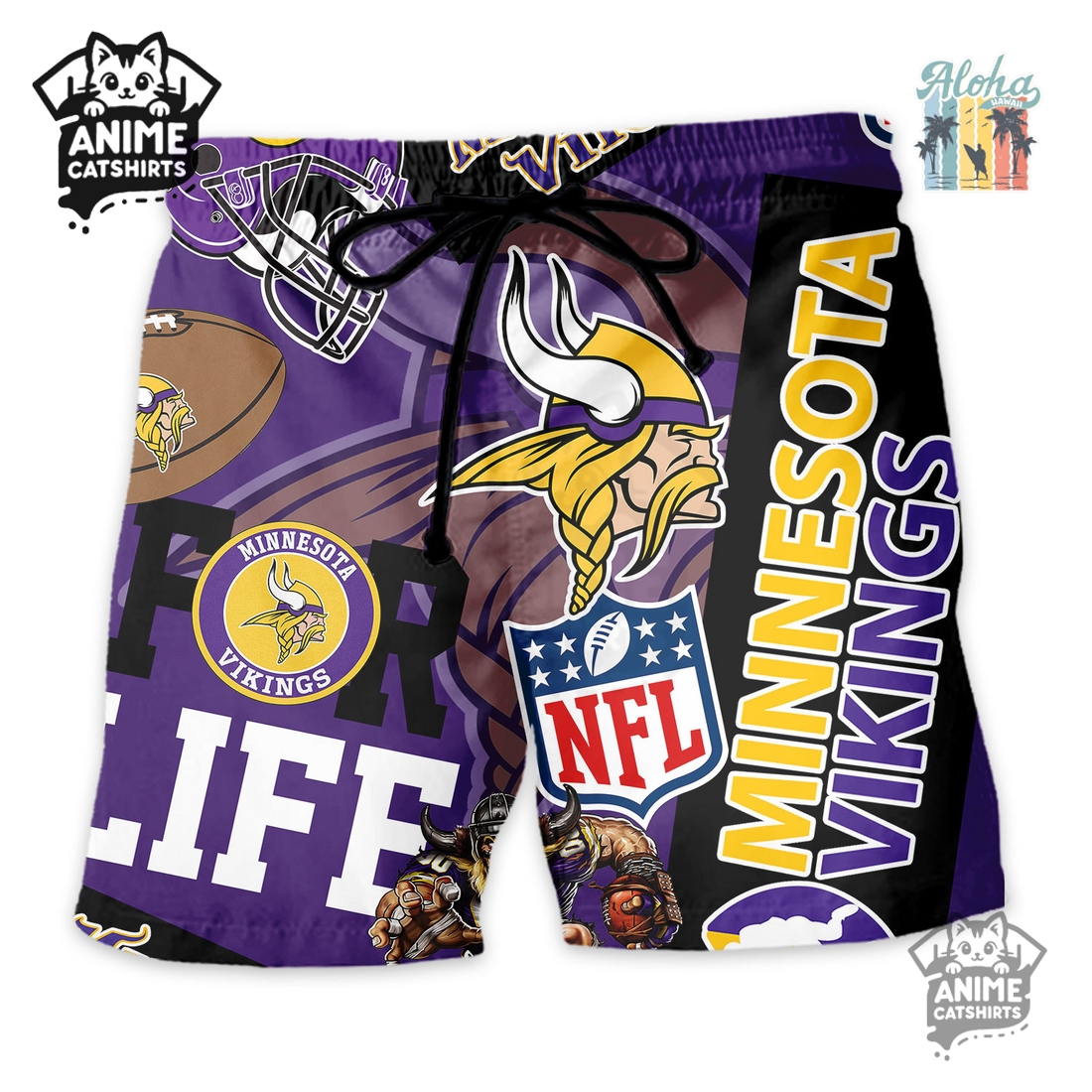 The design is the true centerpiece of this unique pairing. The shirt, a quintessential Aloha button-up, features a relaxed fit, short sleeves, and a notched collar, ideal for breathability and a casual look. Its surface is adorned with a custom-designed print that intricately weaves Minnesota Vikings iconography into a tropical tapestry. Expect to see the legendary horned helmet, team logos, or perhaps subtle M-V motifs interspersed with traditional Aloha elements like palm fronds, hibiscus flowers, and abstract wave patterns, all rendered in the team’s unmistakable color scheme. This isn’t just a logo slapped on a shirt; it’s a thoughtful integration that respects both the team’s identity and the island-inspired style. The matching shorts complement the shirt perfectly, often featuring a continuation of the same vibrant pattern. They typically come with an elastic waistband and drawstring for an adjustable, comfortable fit, along with practical pockets for essentials, making them just as functional as they are fashionable.