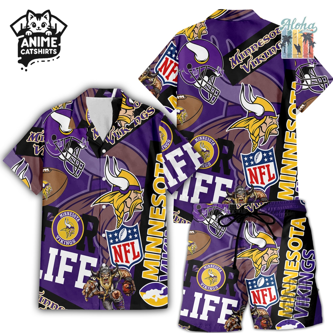 Minnesota Vikings NHL Aloha Shirt & Shorts Set – Stylish & Comfortable Hawaiian Shirt and Shorts Set