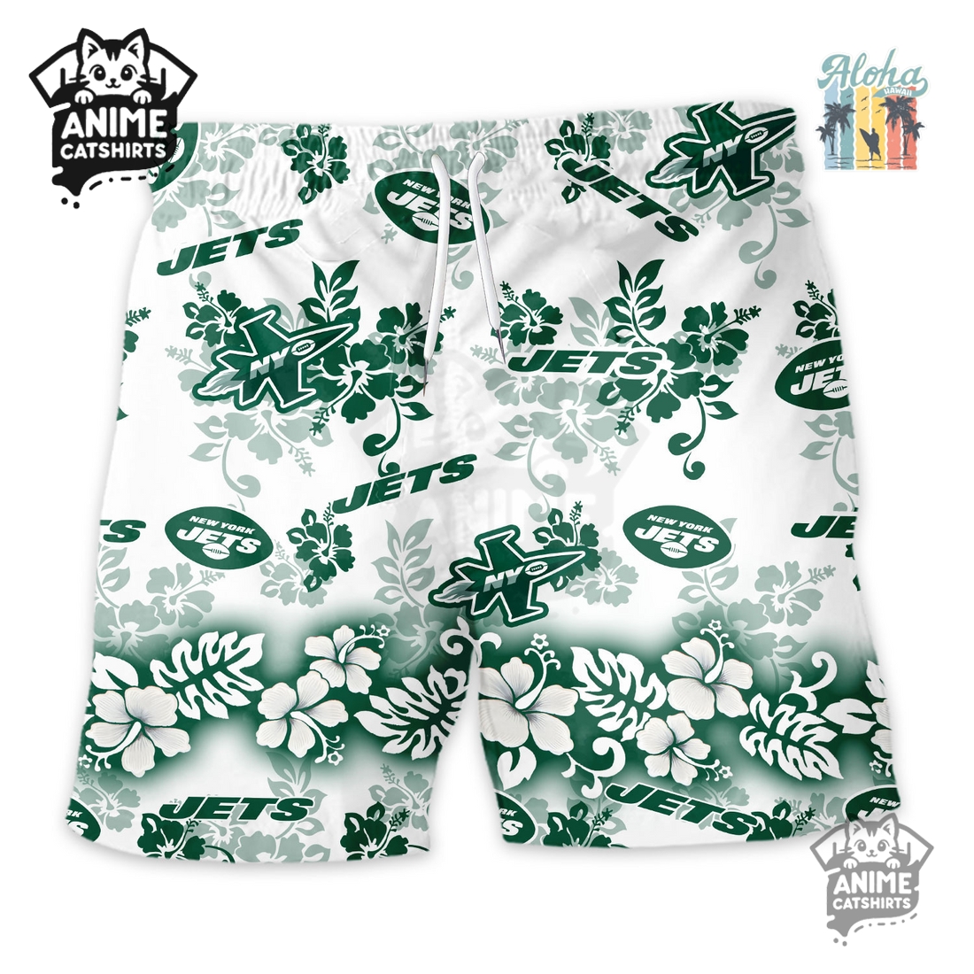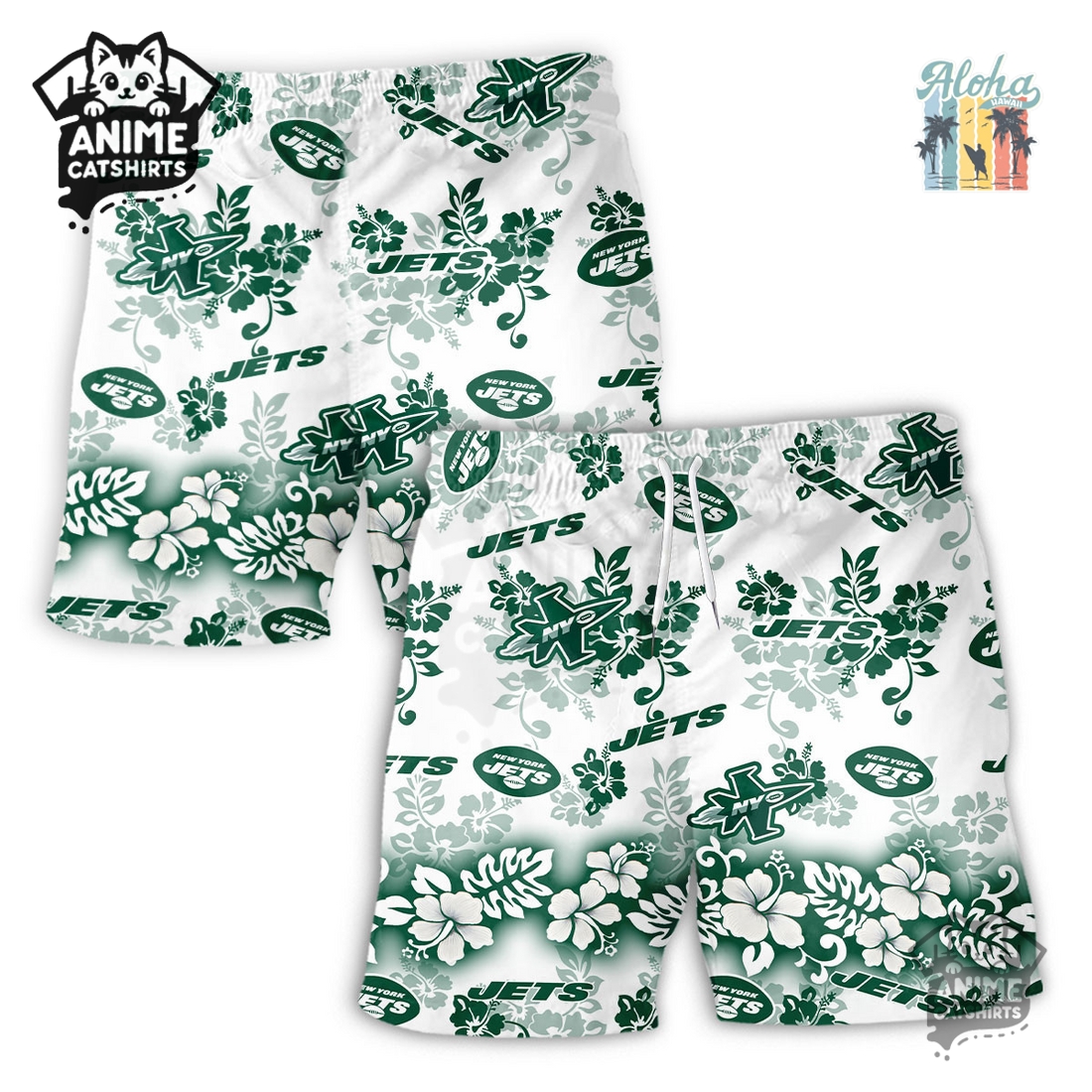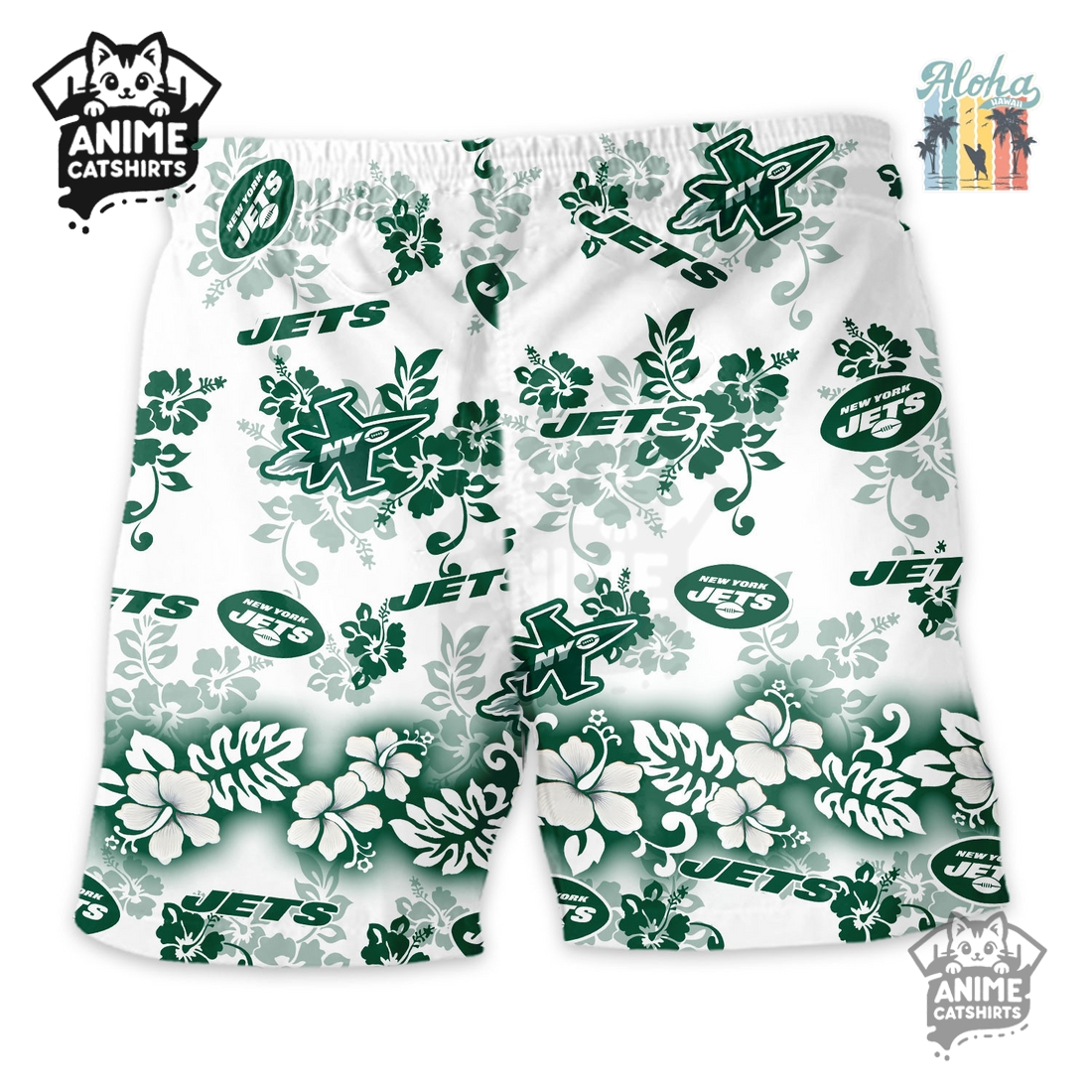 The New York Jets Aloha Paradise Hawaiian Short offers an unparalleled blend of vibrant tropical style and unwavering team allegiance, creating an essential wardrobe piece for any devoted fan seeking comfort and distinction in warm weather. This isn’t merely a pair of shorts; it’s a statement, a wearable celebration that fuses the lively spirit of the islands with the fierce loyalty of the Gang Green faithful. At its core, the design masterfully integrates classic Hawaiian motifs – think swaying palm trees, exotic hibiscus blooms, and perhaps gentle ocean waves – with the iconic New York Jets branding. Imagine a lush, verdant backdrop, echoing the team’s signature green, intricately patterned with subtle Jets logos, wordmarks, or even stylized helmets interspersed amongst the flora. The color palette remains true to the team while embracing a relaxed, sun-drenched aesthetic, ensuring that while you’re sporting a tropical vibe, your allegiance is unmistakably clear.
